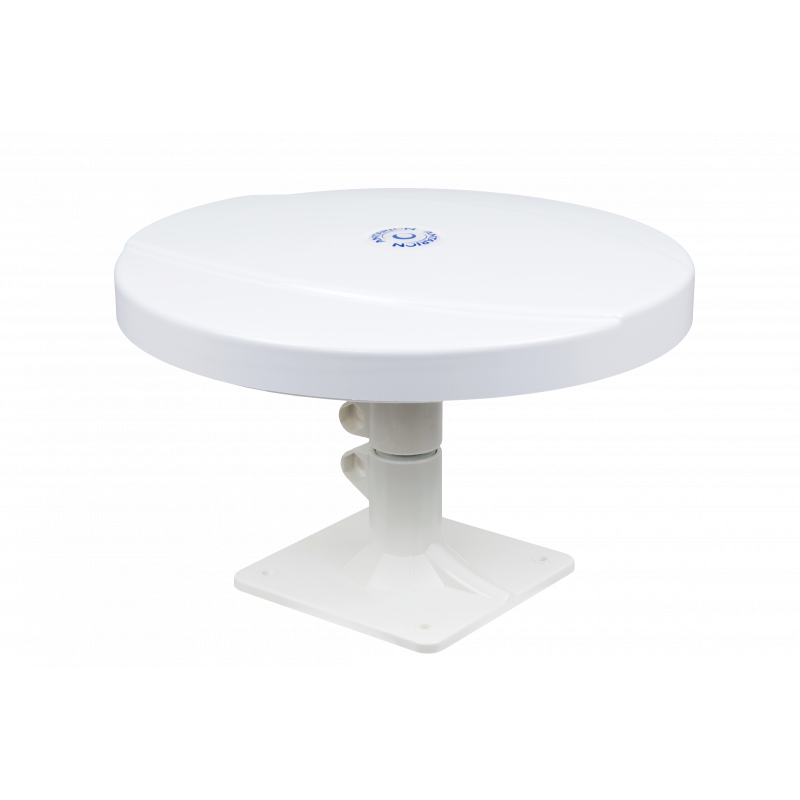Antarion antena terrística Omnipro Plus 38db para montar en la autocaravana, camper o camión. La antena no necesita ajustarse, sino que busca la señal en un radio de 360°. No es necesaria una fuente de alimentación externa. La antena sólo está conectada al televisor. En cuanto enciendes el televisor, llega corriente continua a la antena a través del cable coaxial.