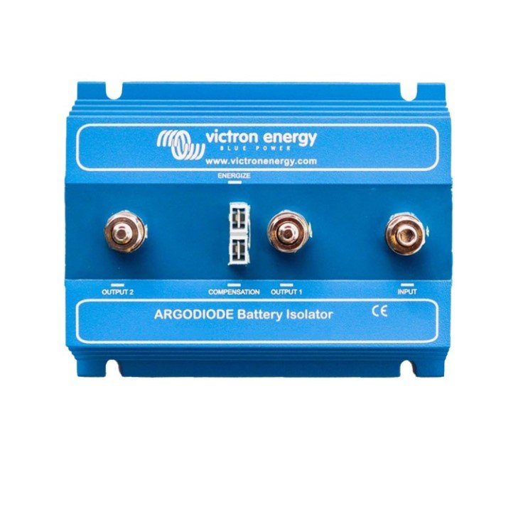 Los aisladores de batería Argo se caracterizan por una baja caída de tensión gracias al uso de diodos Schottky: a baja corriente, la caída de tensión es de aproximadamente 0,3 V y a la potencia nominal, de aproximadamente 0,45 V. Todos los modelos están equipados con un diodo de compensación que puede utilizarse para aumentar ligeramente la tensión de salida del alternador. De este modo se compensa la caída de tensión sobre los diodos del aislador.