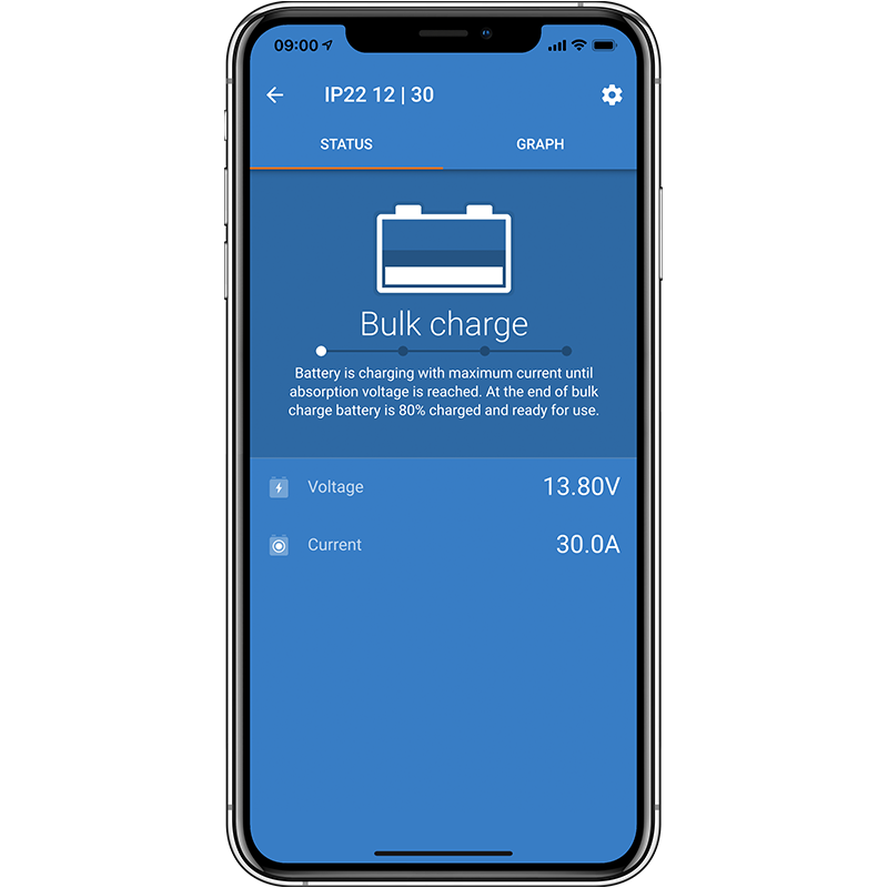 El Victron Energy Blue Smart IP22 12/30(3) Charger 12V 30A es un cargador de batería profesional para hasta 3 baterías recargables.