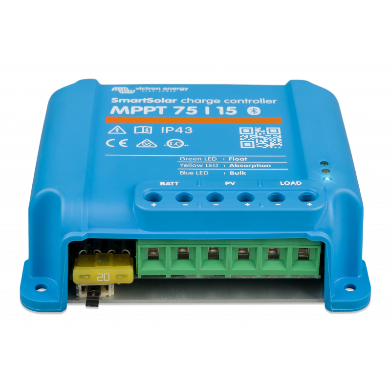 Controlar y supervisar a distancia las amplias funciones de su cargador SmartSolar MPPT con Bluetooth incorporado emparejándolo con su smartphone u otro dispositivo a través de VictronConnect. Si su instalación está conectada a Internet, el Portal de Gestión Remota Victron (VRM) le proporciona acceso a toda la potencia de su MPPT, en cualquier momento y desde cualquier lugar; ambos servicios son de uso gratuito. Para instalaciones remotas – incluso cuando no hay conexión a Internet o señal de teléfono cerca – usted puede ser capaz de controlar su MPPT por Bluetooth-emparejando con un dispositivo LoRaWAN (red de área amplia de largo alcance), disponible opcionalmente.