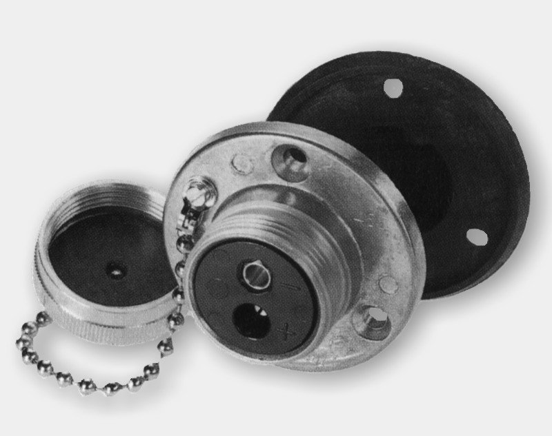 Enchufe de 2 polos según DIN 14690 con tapa protectora y junta para la instalación en vehículos